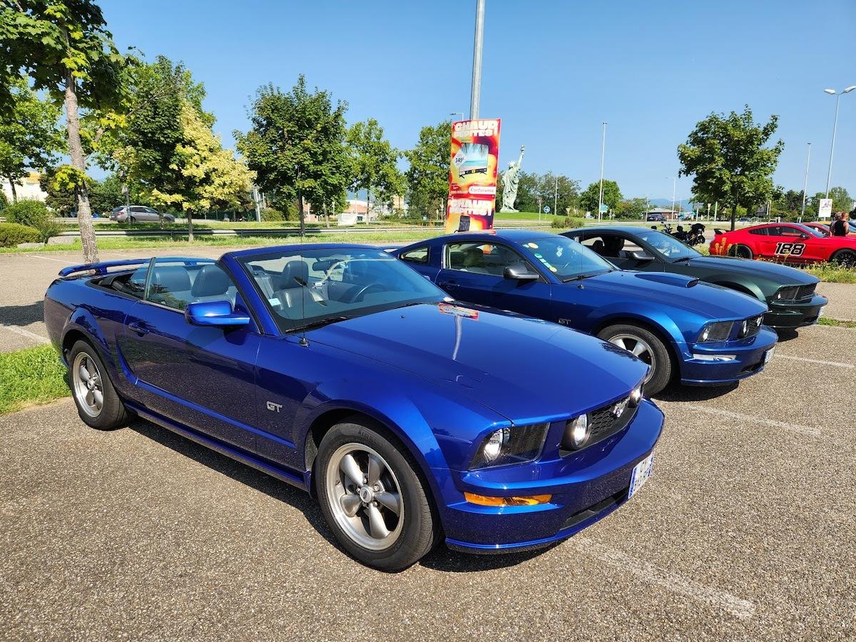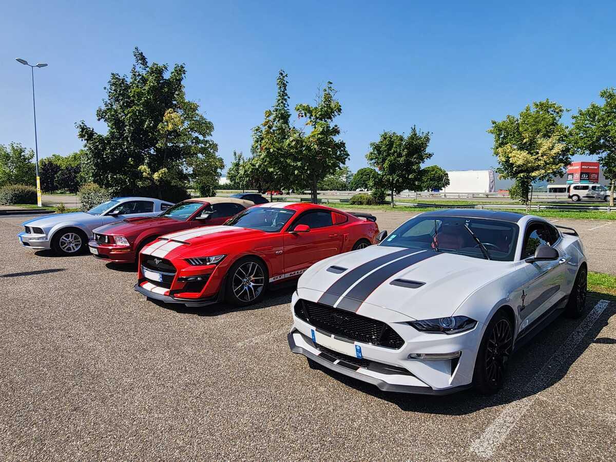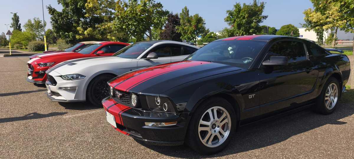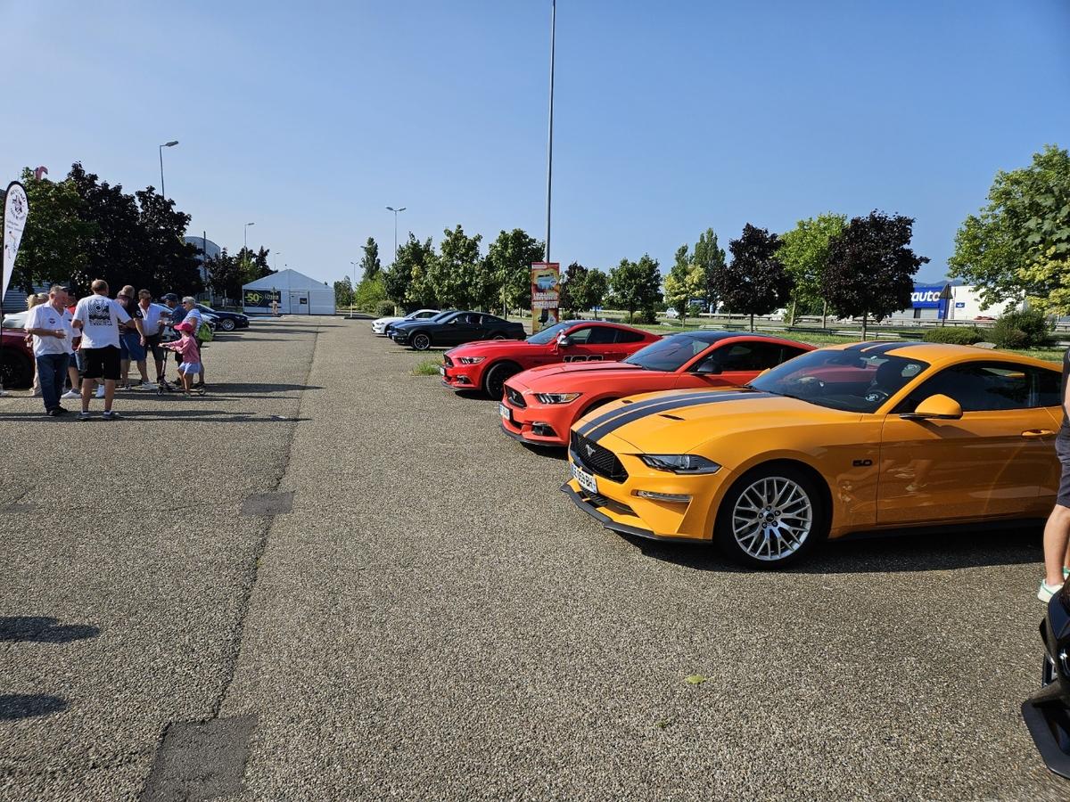 Rassemblement Mustangs parking Darty Colmar puis départ auberge