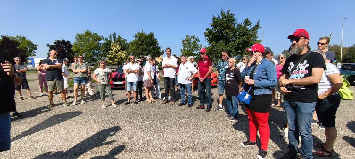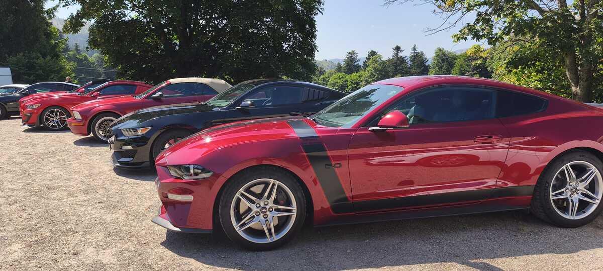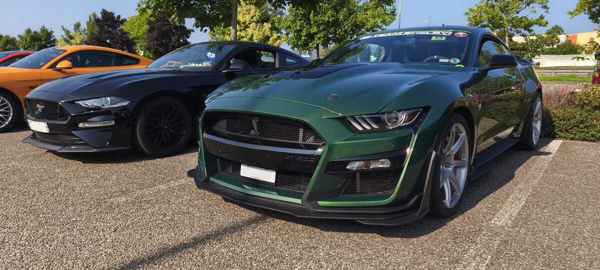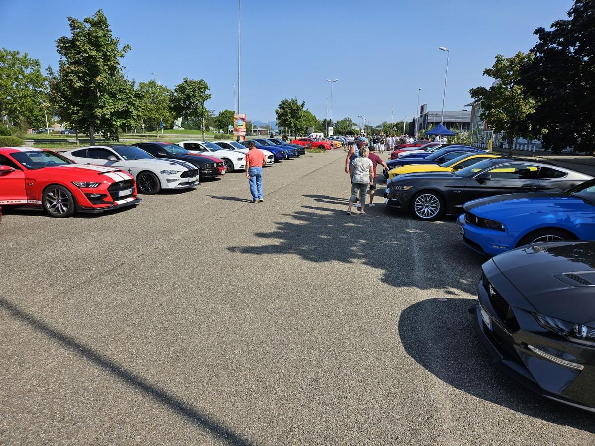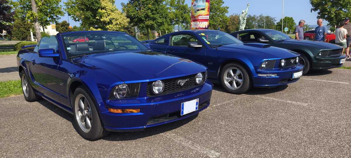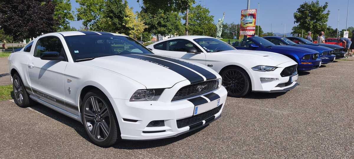 Rassemblement Mustangs parking Darty Colmar puis départ auberge